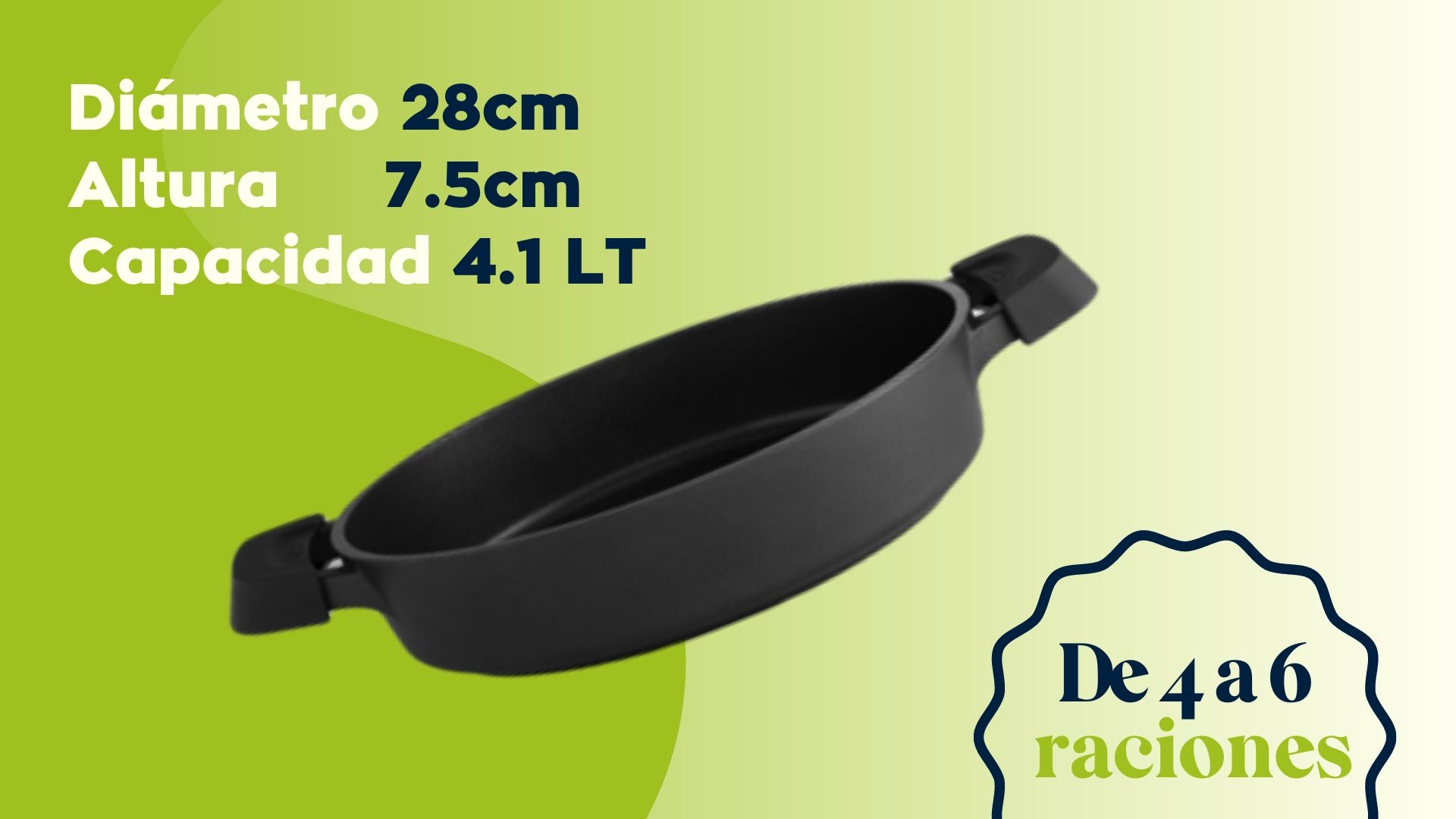 Esta tartera es el complemento ideal para tu UNICO 28 cm. Sus dimensiones y características la hacen ideal para pizzas pequeñas, empanadas, hojaldres, bizcochos, tartas, pastas, arroces, tortillas y asados de todo tipo: verduras, patatas, carnes, pescados… Pero también puedes usarla de sartén para plancha y tortillas. Capacidad aproximada para 4-6 raciones.