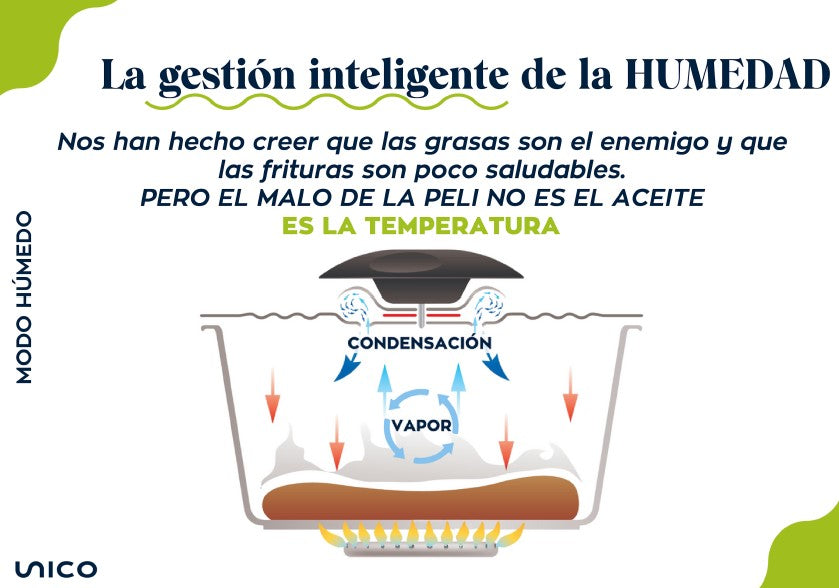 ✅ Cuidas tu Salud: podrás guisar y FREIR por debajo de 120º. Así evitas contaminar tu aceite con radicales y sustancias cancerígenas como la temible ACRILAMIDA.